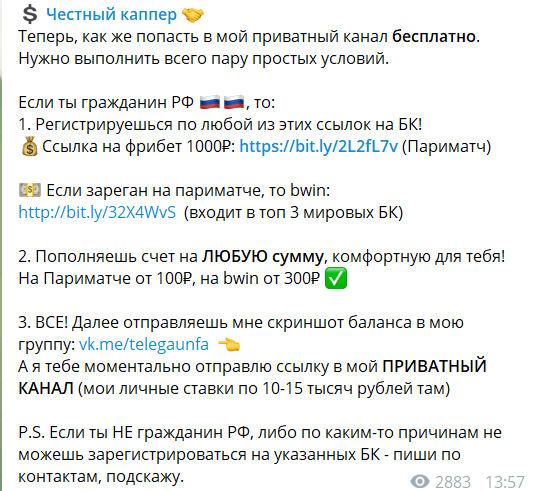 Прежде всего, нет никакой верификации прогнозов. Поэтому все строится на личном доверии к капперу, что выглядит так себе. Плюс ко всему нет обратной связи, а все комментарии в группе закрыты.