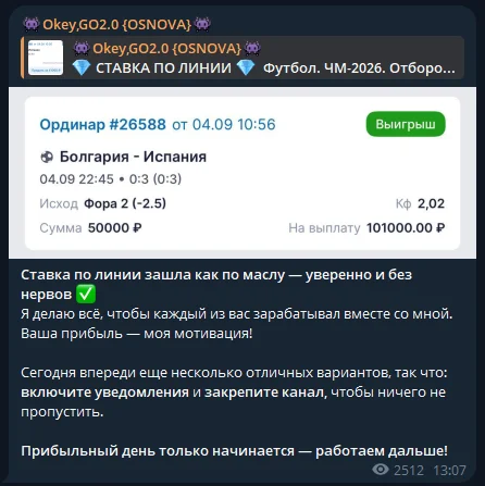 Можно сказать что Okey,GO2.0 OSNOVA типичный анонимный канал с бесплатными прогнозами на футбол и хоккей. Но придется считаться с рисками из-за отсутствия верификации и откровенной подделки статистики. О каппере много негативных отзывов, часть из них возможно написаны конкурентами, но тем не менее негатива немало. В любом случае каппер не входит в топ лучших прогнозистов даже близко, к сожалению.